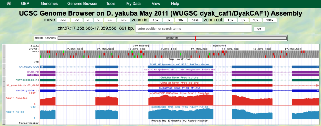 The GEP UCSC Genome Browser is a tool to visualize genetic information in an easy-to-use format. This makes it far easier for us to examine unique patterns or spot similarities across species.