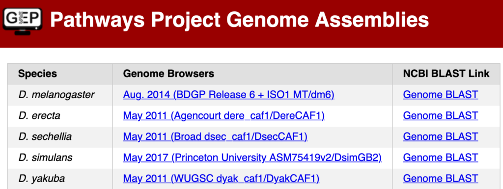 • Pathways Project Genome Assemblies searches against SPECIFIC species assemblies. If you are looking for something a bit broader, you can navigate to NCBI BLAST.
