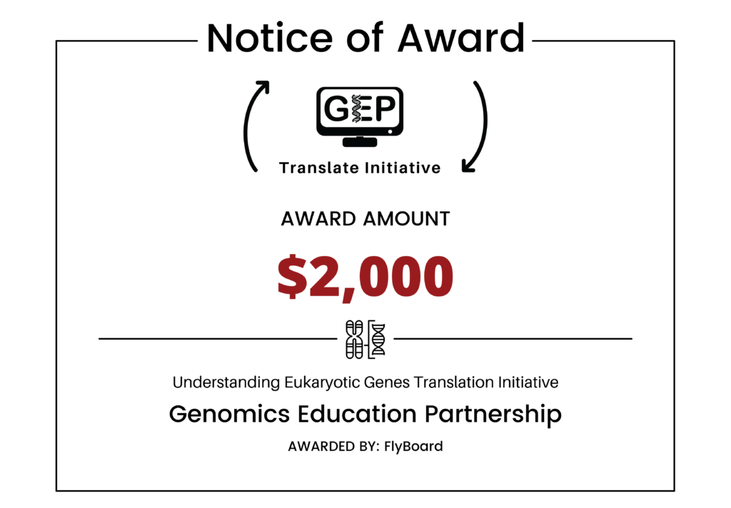 The Genomics Education Partnership (GEP) is a 140+ faculty collective that provides undergraduate students with bioinformatic CUREs on manual gene annotation in multiple Drosophila fruit fly species. As part of a global initiative to increase accessibility and diversity retention, GEP is working to translate their “Understanding Eukaryotic Genes” modules on manual gene annotation for undergraduates from English to Spanish. They are also creating accompanying Spanish-language videos. These new materials will be a first step to recruiting and retaining English as a Second Language students in Drosophila research across all postsecondary institutions.